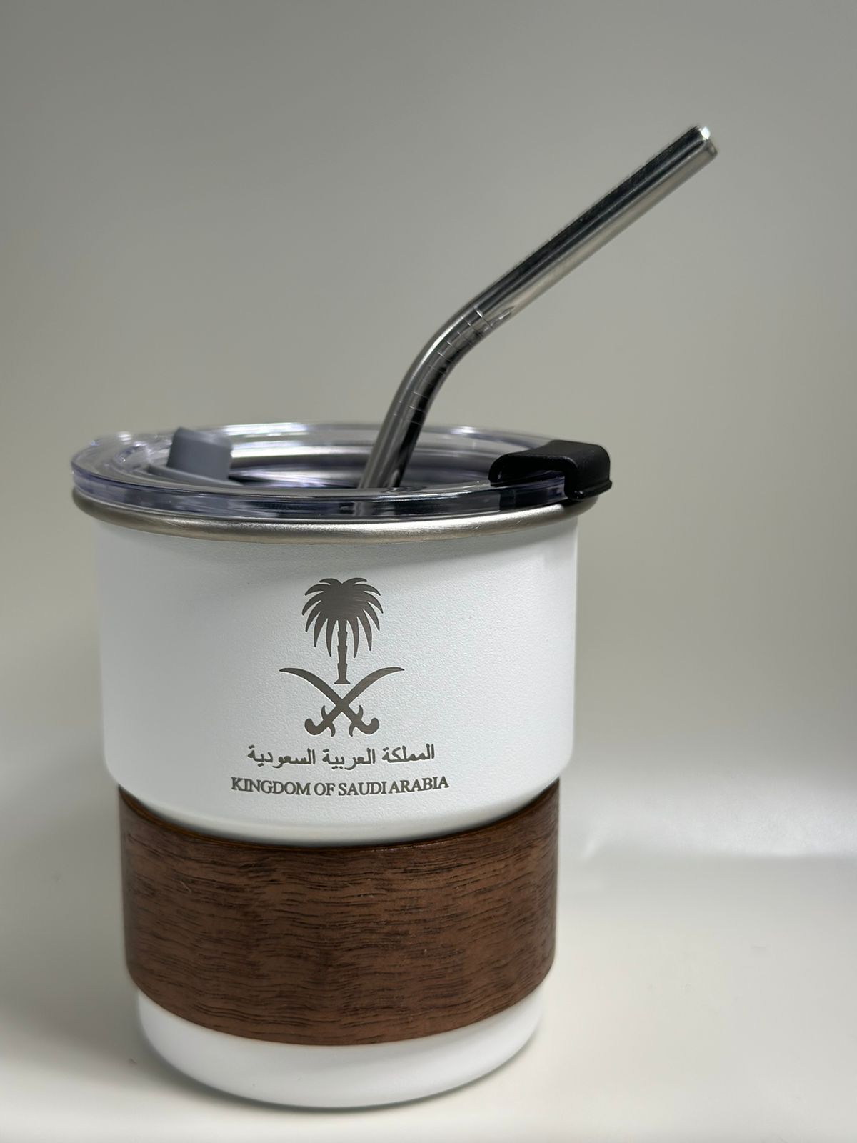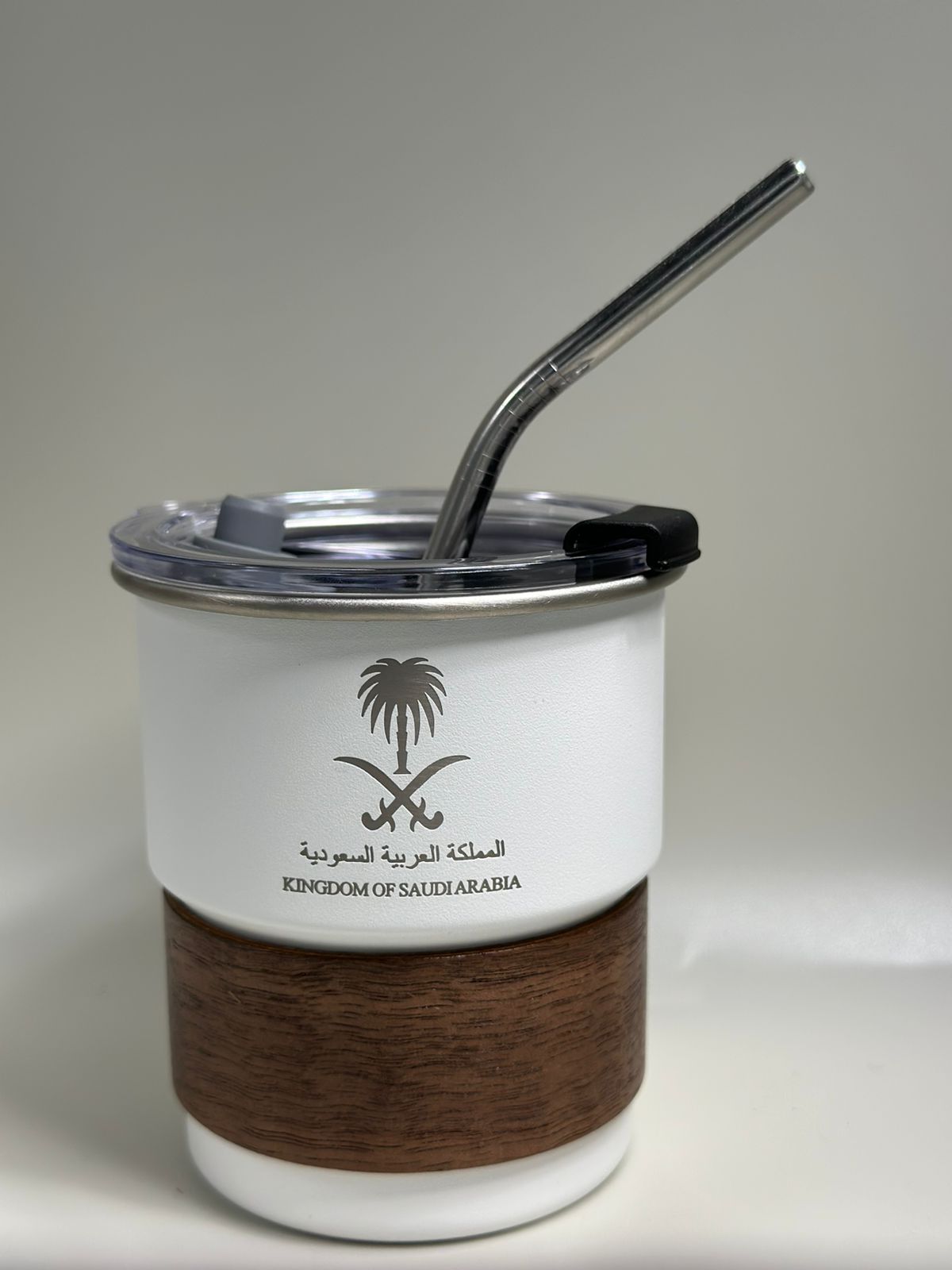 ✨ كوب ستيل أبيض فاخر لليوم الوطني السعودي ٩٥ 🇸🇦 ✨